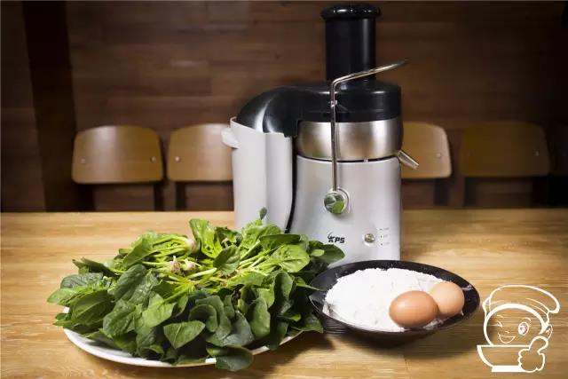 純凈水、面粉、洗干凈的菠菜、雞蛋、榨汁機、干凈的碗、盤子若干