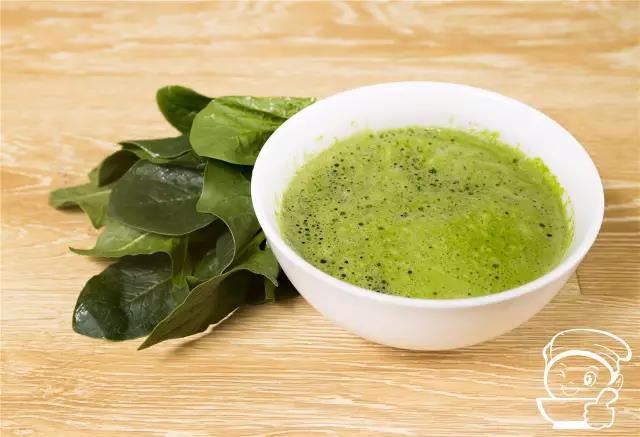 洗干凈的菠菜放入榨汁機,榨成菠菜汁。